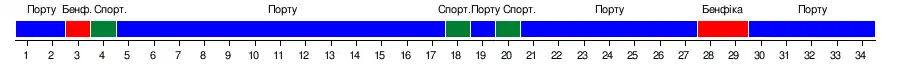 | «Порту» | 2-0 | 0-0 | 2-0 | 3-1 | 3-0 | 2-0 | 4-0 | 2-1 | 3-1 | 3-0 | 6-1 | 5-2 | –––– | 5-0 | 2-1 | 1-0 | 4-2 | 5-1 |