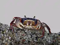 - Cardisoma armatum — райдужний краб, мешкає на узбережжі Тихого океану. Має яскраве забарвлення — спина синього кольору, лапи — червоного. Для утримання потрібні острівці суходолу. Дуже територіальні, тому агресивні по відношенню один до одного. Територія, яка необхідна для однієї особини — 40х40 см.