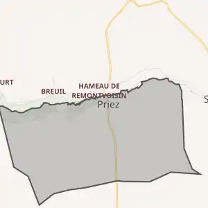 - Розташування муніципалітету Пріє на мапі Франції та сусідні муніципалітети