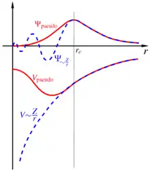 Хвильові функції валентних електронів не мають вузлів в області остова, водночас добре відтворюючи поведінку електрона на великих віддалях від ядра атома.