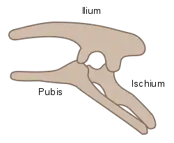 ![]() тазова будова у птахотазових (вид зліва) | ||||||||||||