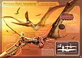 Анатомія птерозаврів значно відрізнялася від їх предків рептилій завдяки адаптації для польоту. Кістки птерозавра були порожніми і заповнені повітрям, так само як і кістки птахів. Вони мали кіль грудної клітини, яка була розвинена для посилення польотних м'язів і збільшений мозок який свідчить про функції пов'язані з польотом.[4] В деяких пізніших птерозаврів, хребетні кістки за плечима зрослися в структуру, що відома як notarium, що додавала жорсткості тулубу під час польоту, і забезпечувала надійну підтримку лопаткам (плеча).