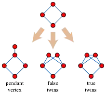 Три операції, за допомогою яких можна побудувати будь-який дистанційно-успадковуваний граф. Для птолемеєвих графів сусіди двійнят мають утворювати кліку, щоб запобігти побудові 4-циклу, показаного тут.