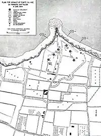 Схема розташування оборонних споруд (за даними розвідки союзників) Пуент-дю-Ок у системі «Атлантичного Вала»