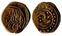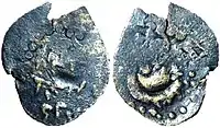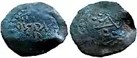 - 1 тип: На аверсі карбувалася арабським письмом легенда, на реверсі зображувався птах. Середня вага 2,17 гр. Місце карбування та ім'я князя цього типу невідоме.