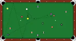 - у разі, коли прицільна куля вилітає за більярдний стіл, його виставляють до найближчого борту або встановлюють на мітку початкової позиції. У випадку, якщо на точці вже перебуває куля, кулю, що вилетіла виставляють максимально близько до точки з урахуванням проміжку між кулями;