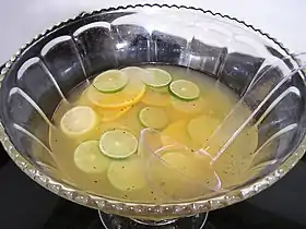Подається традиційно на вечірках у великих широких шальках, з плаваючими в них шматочками фруктів.