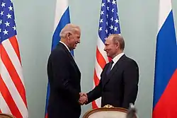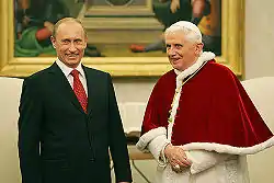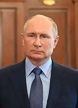 Володи́мир Володи́мирович Пу́тін (рос. Владимир Владимирович Путин; нар. 7 жовтня 1952, Ленінград) — російський державний та політичний діяч, колишній офіцер радянської розвідки[7]. Чинний президент Російської Федерації і верховний головнокомандувач збройних сил Російської Федерації з 7 травня 2012 року[8].