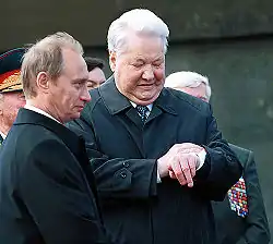 31 грудня 1999 року в зв'язку з добровільним відходом Єльцина у відставку Путін стає виконувачем обов'язків президента Російської Федерації неконституційно, шляхом прямого успадкування. З 26 березня 2000 року вибраний президент Росії. Вступив на посаду 7 травня 2000 року.