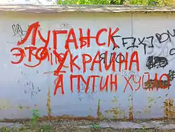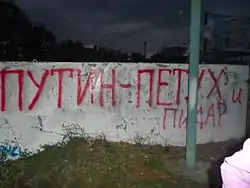 - «Путін х#йло» (х@йло, хλйло, х"йло, х*йло, х*ло).[149][150][151][152]