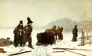 В Михайлівському, поет почув звістку про повстання декабристів. Пушкін сприйняв її з великою тривогою за долю «найблагородніших синів Росії» — як тих, хто був йому дорогий і близький, так і тих, з ким він не був знайомий особисто. За днями довгого очікування прийшла звістка про страту п'ятьох організаторів заколоту і відправці багатьох його учасників в Сибір. Пушкін був вражений. Розправа, вчинена над декабристами, не залишала надій на зміни на краще і в житті самого поета.[51] Проте, за височайшим повелінням, в ніч з 3 на 4 вересня 1826 року в Михайлівське прибуває посланець від псковського губернатора Б. О. Адеркаса: Пушкін в супроводі фельд'єгеря повинен з'явитися в Москву, де в той час знаходився Микола I, коронований 22 серпня.