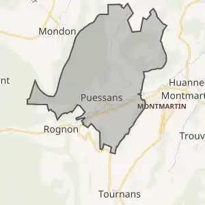 - Розташування муніципалітету Пюессан на мапі Франції та сусідні муніципалітети