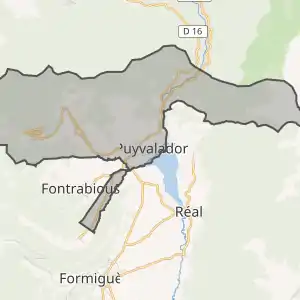 - Розташування муніципалітету Пюїваладор на мапі Франції та сусідні муніципалітети