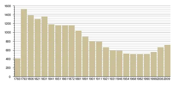 Динаміка населення (Baratier, Duby & Hildesheimer pour l’Ancien Régime[3] ; Insee[4], EHESS pour les chiffres issus des recensements légaux ):