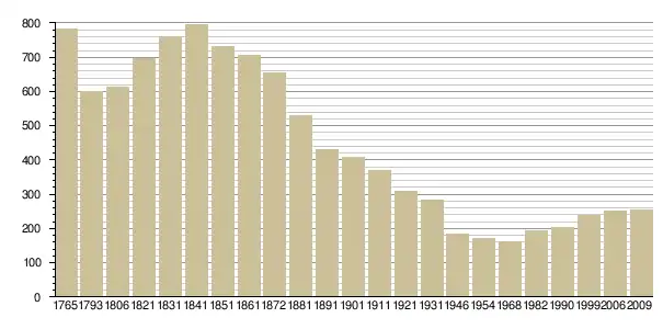Динаміка населення (Baratier, Duby & Hildesheimer pour l’Ancien Régime ; Insee[3], EHESS[4] pour les chiffres issus des recensements légaux ):