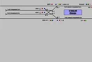 Станція з колійним розвитком — 6 стрілочних переводів, перехресний з'їзд і 2 станційних колії для обороту та відстою рухомого складу.