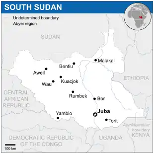 ![]() Розташування Південного Судану