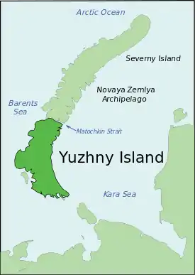 Південний острів — острів архіпелагу Нова Земля, відокремлений від Північного острова вузькою протокою Маточкин Шар (2-3 км), від острова Вайгач протокою Карські Ворота (шириною близько 50 км).