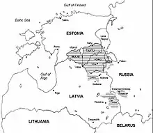 Південноестонські діалекти також присутні на мовних островах Лейву і Лутсі на території Латвії[7] (вимерлі у середині ХХ століття), а також на території Росії — на території Сетумаа і Красногородському мовному острові (діалект краасна) у Псковській області; його носії все ще вважають себе естонцями, проте лінгвістично були асимільовані росіянами.[8]