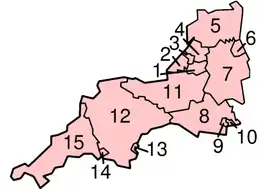 Регіон включає в себе шістнадцять політично незалежних одна від одної адміністративних одиниць — чотири неметропольних графства (Глостершир, Девон, Дорсет і Сомерсет), одинадцять унітарних одиниць (Бат і Північно-Східний Сомерсет, Борнмут, Бристоль, Корнуол, Плімут, Пул, Північний Сомерсет, Свіндон, Торбей, Вілтшир і Південний Глостершир) і адміністративну одиницю з особливим статусом Сіллі. Неметропольні графства, унітарні одиниці та Сіллі об'єднані в сім церемоніальних графств (Бристоль, Глостершир, Девон, Дорсет, Корнуол, Сомерсет і Вілтшир), для забезпечення ними церемоніальних функцій. Неметропольні графства розділені в цілому на 25 неметропольних районів. Унітарні одиниці поділу на райони не мають.