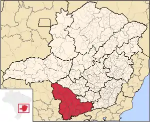 Південь і південний захід штату Мінас-Жерайс на карті штату