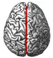 ![]() Головний мозок людини, вигляд спереду. | |