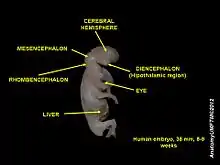 Півкулі головного мозку розвиваються з кінцевого мозку. Вони виникають через п'ять тижнів після зачаття у вигляді двосторонніх інвагінацій стінок. Півкулі ростуть спочатку C-подібно, а потім — у зворотньому напрямку, витягаючи всі структури всередину (наприклад, шлуночки мозку). Так званий отвір Монро забезпечує зв'язок з бічними шлуночками. Судинне сплетення утворюється з епендимальних клітин і судинної мезенхіми.[6]
