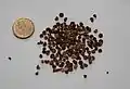 Плід — видовжено-овальна, тупотригранна коробочка, довжина якої вдвічі перевищує ширину. Насіння численне, сплюснуте, коричневе або світло-сіре.