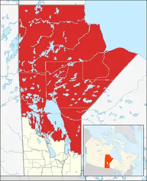 Область складається з чотирьох переписних районів: 19, 21, 22 і 23. Площа області становить 438 491,51 км², яка охоплює 67% від загальної площі земель в провінції Манітоба. Переважна більшість території в області є нерозвиненою дикою природою. Її загальна чисельність населення станом на 2011 рік складала 88 146 осіб, що становить лише 7,3% від загальної чисельності населення провінції Манітоба. Найбільший муніципалітет — місто Томпсон. Інші великі населені пункти — Флін-Флон і Де-Па. Індіанці становлять більше 49% населення області.