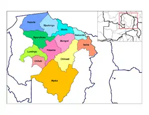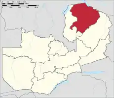 Межує з Центральною (на південному заході) і Східною (на сході) провінціями, провінцією Луапула (на заході), а також з державами ДРК (на півночі), Танзанією (на північному сході) і Малаві (на сході).