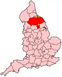 Сусідні графства: Дарем, Східний Йоркширський Райдінг, Камбрія, Ланкашир, Південний Йоркшир та Західний Йоркшир | |