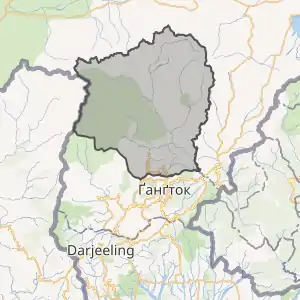 Більша частина населення мешкає біля Манґану, адміністративного центру округу, на висотах близько 2000 м над рівнем моря. На північ висоти збільшуються, а рослинність стає альпійською. Температури коливаються між 25° до 40 °C на найбільших висотах, що досягають понад 6 000 м. Найвищою вершиною є Канченджанґа, третя за висотою вершина світу, що знаходиться на кордоні з Непалом.