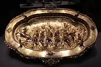 За малюнком Бернардо Строцці. Таріль зі сценами життя Клеопатри, срібло, Музей Гетті, США.