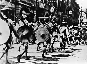 ![]() Солдати Національно-революційної армії входять на територію британської концесії в Ханькоу під час Північного походу | |||