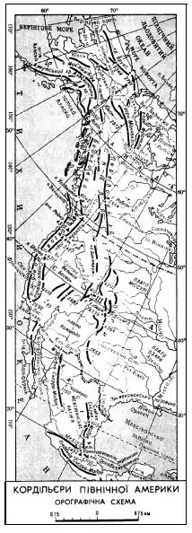 Кордильєри Північної Америки — частина гірської системи Кордильєр, витягнута по західній околиці Північної Америки (включаючи Центр. Америку). Довжина понад 9000 км, ширина 800—1600 км. Кордильєри Північної Америки утворені різнорідними та різновіковими геологічними структурами, включаючи жорсткі масиви докембрію (плато Колорадо, деякі хребти Скелястих гір), складчасті товщі осадових і метаморфічних порід палеозою (гірські масиви Юкон[уточнити] та Макензі), мезозойські батоліти (Береговий хребет, Сьєрра-Невада), вулканічні і вулканогенні товщі (хребти Західного поясу). Кордильєри Північної Америки містять родовища руд кольорових металів, ртуті, золота, нафти, кам'яного вугілля. Майже по всій довжині Кордильєри Північної Америки складаються з трьох поздовжніх орографічних поясів. Східний (пояс Скелястих гір) утворюють хребти Брукс, Східний Сьєрра-Мадре, гори Макензі, власне Скелясті гори. Висота до 4399 м (гора Елберт). Західний (Тихоокеанський) пояс представлений смугою високих складчастих і вулканічних хребтів; найбільші з них — Аляскинський (з найвищою точкою Північної Америки — гора Деналі (Мак-Кінлі), 6191 м), Алеутський (гора Редаут, 3108 м), Береговий (гора Ваддингтон, 4019 м), Каскадні гори (гора Рейнір, 4392 м), Сьєрра-Невада (гора Вітні, 4421 м), Західна Сьєрра-Мадре, Поперечна Вулканічна Сьєрра, Південна Сьєрра-Мадре. На крайньому заході гори роздроблені, до гірського ланцюга там входить ряд островів (архіпелаг Александра, острів Ванкувер та ін.). Внутрішній пояс утворюють плато та плоскогір'я — Юкон, Фрейзер, Колумбійське, Великий Басейн, Колорадо, Мексиканське нагір'я, які розділені глибокими тектонічними депресіями. У Кордильєрах Центральної Америки та Вест-Індії виділяють кілька гірських дуг, які розділені глибокими западинами: північна продовжує системи Скелястих гір і Східних Сьєрра-Мадре, слідує через острови Кайман на Кубу, Гаїті, Пуерто-Рико і закінчується на острові Сент-Томас; більш південна дуга — продовження Південної Сьєрра-Мадре — переходить в гори Ямайки, південної частини Гаїті і з'єднується з північною дугою на Пуерто-Рико; третю дугу утворює Вулканічна Сьєрра. Вона починається поблизу мексикансько-гватемальського кордону і закінчується на заході Панами, орографічно і структурно переходячи у Анди Південної Америки. Площа заледеніння 67 тис. км², головним чином на Алясці. У Кордильєрах Північної Америки беруть початок багатьох великих річок — Юкон, Макензі, Піс-Рівер, Міссурі, Колумбія, Колорадо, Ріо-Гранде.
