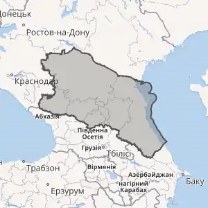 | * Площа вказана разом з Чеченською Республікою ** Площа вказана разом з Республікою Інгушетія | |||||