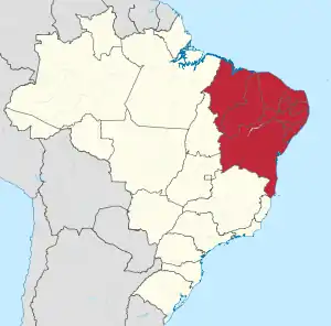| Штати | Алагоас, Баїя, Сеара, Мараньян, Параїба, Пернамбуку, Піауї, Ріу-Гранді-ду-Норті, Сержипі | |||