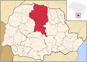 Північно-центральна частина штату Парана на карті штату