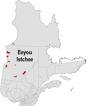 Північ Квебека розділений на три райони — більш освоєну і європеїзовану частина Жамезі на півдні, інуїтську територію Нунавік на півночі, а також кілька анклавів крі, створених в 2007 році і об'єднаних під загальною назвою Регіональна адміністрація крі.