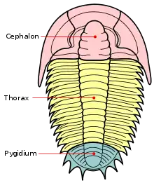 Основні відділи тіла трилобіта, включаючи пігідій.