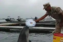 У ВМС США з дельфінів і морських левів сформовано п'ять команд. Одна з них спеціалізується на пошуку потерпілих біду на морі, три — на пошуку морських мін, ще одна — на пошуку інших затонулих предметів. Бойових дельфінів використовували ВМС США під час війни в Перській затоці і війни в Іраку для пошуку морських мін. Всього в операціях було залучено близько 75 дельфінів[5]. Під час війни в Іраку тільки в акваторії порту Умм-Каср дельфіни знешкодили понад 100 мін[6].
