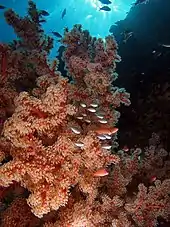 Вода значно краще пропускає короткохвильову частину спектру — блакитні та зелені промені. В результаті при зйомці в природному освітленні колір підводних об'єктів змінюється із зануренням в глибину — починаючи з глибини 3-5 метрів, практично повністю втрачається червона і послаблюється жовта частина спектра.