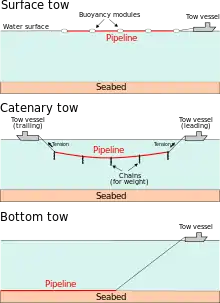 Труби для підводних газопроводів і нафтопроводів виготовляють в основному з низьколегованої сталі. Товщина стінки труб обирається залежно від внутрішнього тиску, характеру водної перешкоди, виду продукту, що транспортується та інших умов.