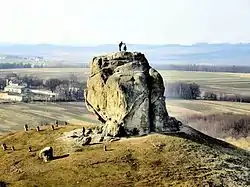 Одним із свідків минулого є унікальна пам'ятка природи — скелястий велетень, розташований на високому узгір'ї на північно-східній околиці селища, прозваний в народі «Каменем». Звичайно, що 16-ти метровий кам'яний останець своєю величчю завжди привертав до себе увагу. В очах наших далеких предків він порівнювався з чимось духовним, надприродним. Знахідки у підніжжі Каменя фрагментів посуду висоцької культури ранньозалізного часу (ХІ-VII ст. до н. е.) та періоду Галицько-Волинської держави (ХІ-ХІІІ століття), засвідчують використання його, у першому випадку, в ролі ідола, обереги місцевих жителів і землі від усього злого, а у другому — наскельного храму-фортеці. Можливо саме із цими часами пов'язується ніша, зроблена у формі стилізованого серця із західного боку Каменя. Там могли відбуватися язичницькі обряди давніх мешканців цієї території, приносилися жертви для умилостивлення богів.