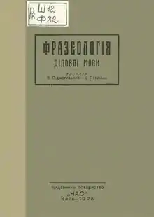 - Фразеологія ділової мови / уложили: В Підмогильний, Є. Плужник. — Київ: Час, 1926. — 293 с.