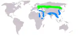 ![]() Ареал: гніздування зимівля | ||||||||||||||||