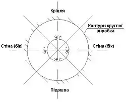 У виробках чи конструкціях, де візуально неможливо розрізнити перехід підошви у стіни (боки), за неї приймають у поперечному перерізі частину, обмежену прямими, що проходять через поздовжню вісь виробки (конструкції) і утворюють між собою прямий кут (90°). Градусна міра між цими прямими і вертикальною віссю становить 45°. Такий підхід стосується перш за все круглих виробок, тунелів та інших підземних споруд.
