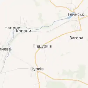 Від села Загора на південний захід бруківка веде в село Підцурків, центр якого на віддалі 2-ох кілометрів (4-ох кілометрів від села Глинськ). Село простягнуте довгою смугою і з півночі кількома забудовами примикає аж до залізничної зупинки "Ульбарів". Підцурків має 55 дворів і жодної громадської будівлі. Протягом 1990-х-2000-х років були втрачені: приміщення старого клубу (розібране на цеглу), приміщення нового клубу і бібліотеки (продане і переведене в будинок з господарськими будівлями), приміщення колишньої початкової школи (продане і переведене в будинковолодіння), крамниця (недіюча закинута дерев'яна будівля), тваринний двір КСП "Дружба" (кузня, літній коровник, зимовий коровник та конюшня - все розібране і розкрадене до фундаменту), цегляне приміщення залізничної зупинки (недіюча закинута будівля). Водонапірна башта приватизована місцевими мешканцями.