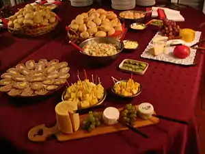 Традиційно їжа береться пальцями (хоча сьогодні існує тенденція використовувати зубочистки, або пластикові шпажки).