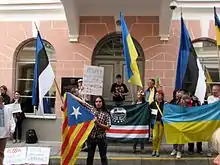 - Russian embassy in Tallinn picketed in support of Sentsov. Photos, video. https://www.ukrinform.net (англ.). Процитовано 29.02.2020.